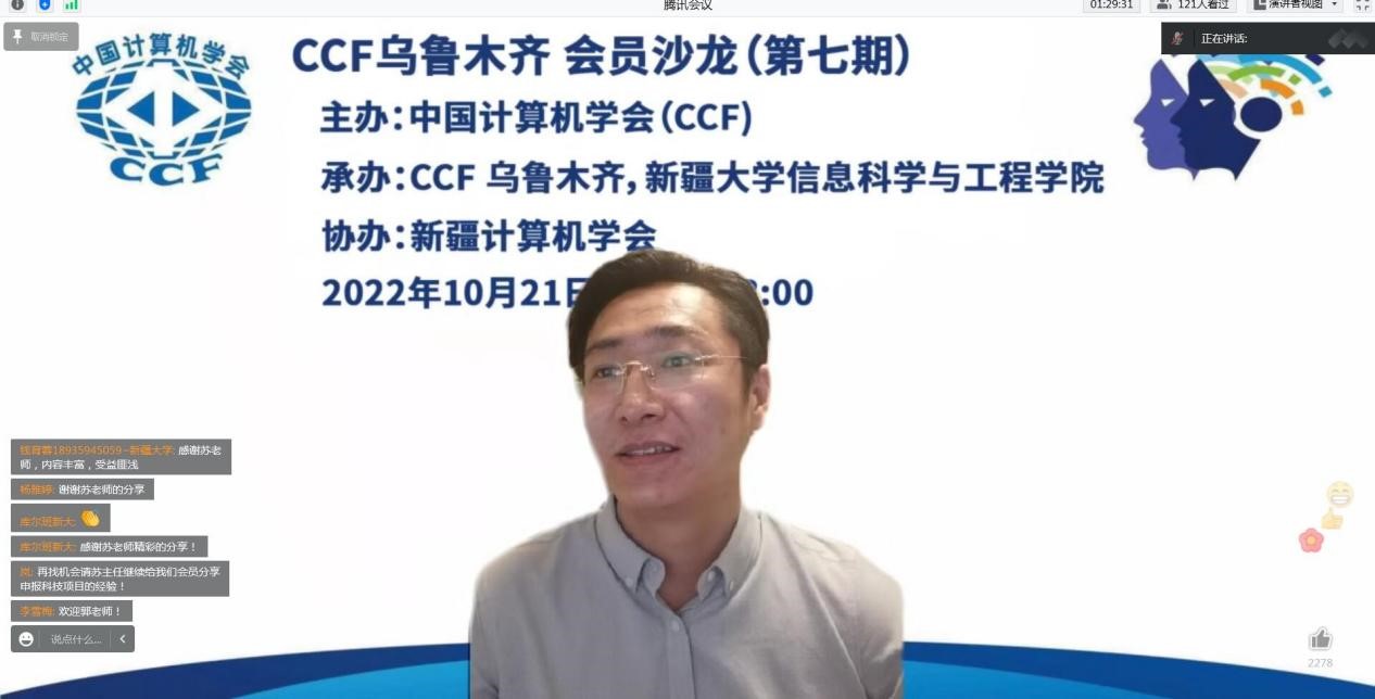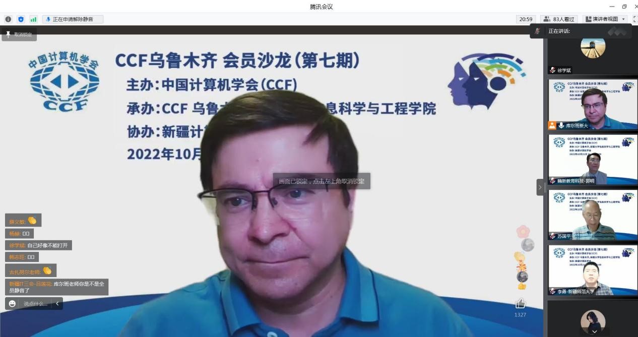 会议开场由CCF乌鲁木齐分部副主席、新疆大学信息学院电子系主任库尔班·吾布力教授主持,库尔班教授对两位专家为CCF乌市会员作报告表示感谢,同时对全体参会会员表示感谢。